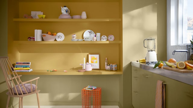 下載快速免費的 Dulux 空間配色大師應用程式,看看野麥黄 Wild Wonder™ 如何讓居家煥然一新。